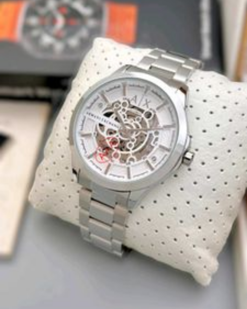 Armani Exchange Premium Silver Skeleton Dial Wristwatch