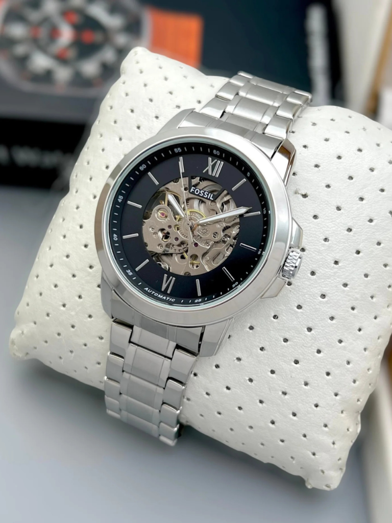 Fossil Silver Skeleton Dial Automatic Watch