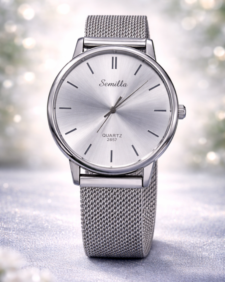 Semilla Silver Classic Mesh Wrist Watch for Women & Girls Classic Dial Quality Stainless Steel