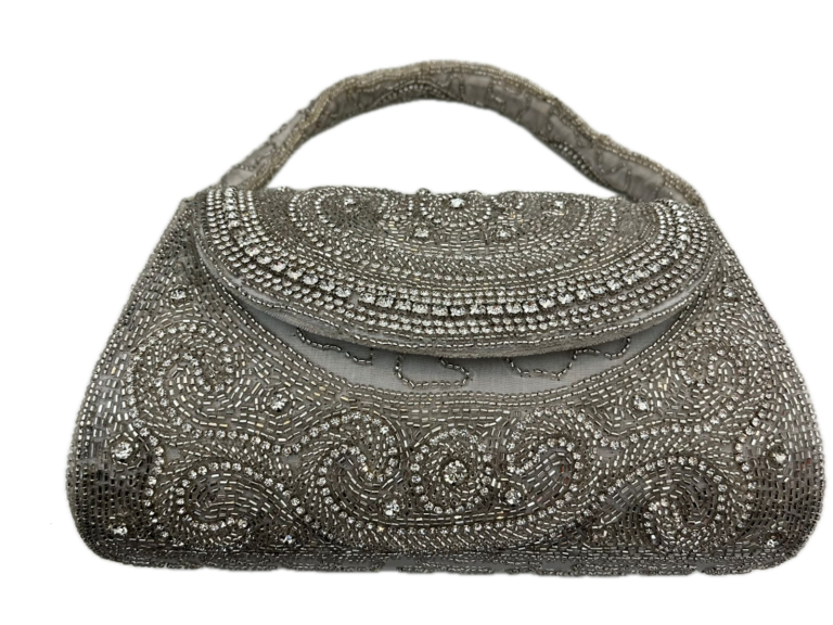 White & Gold Beaded Handbag