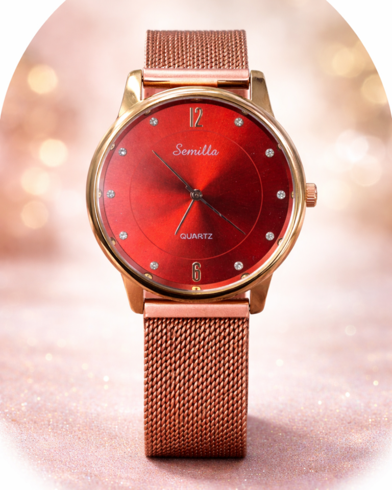 Semilla Rose Luxe Ruby Dial Wrist Watch for Women & Girls Classic Dial Quality Stainless Steel