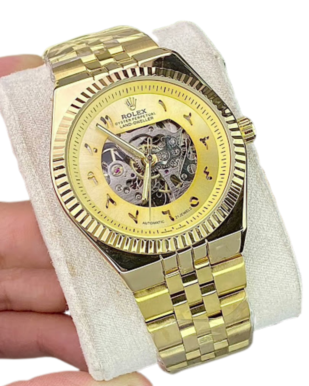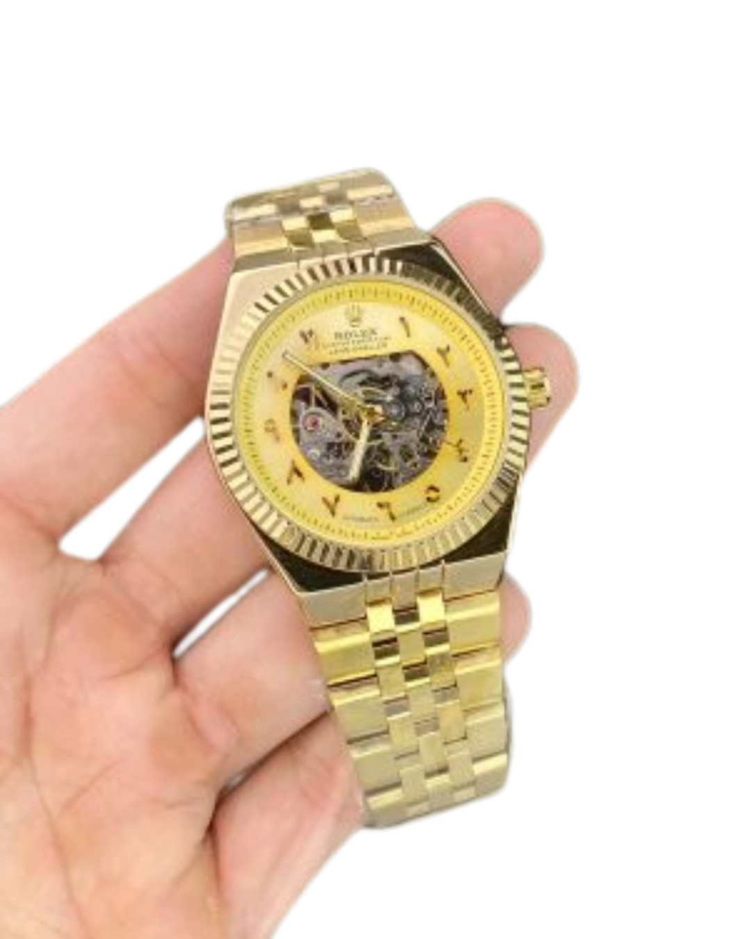 Experience true luxury with the Rolex Full-Gold Automatic Skeleton Watch — a masterpiece crafted for those who appreciate bold style, precision engineering, and timeless elegance.