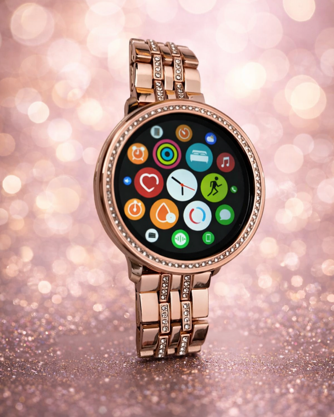Its vibrant full-touch HD display, crystal-studded bezel, and round dial make it look like a true fashion accessory while still offering powerful smart features. Whether you’re tracking fitness, staying connected, or enhancing your daily routine, this watch does it all effortlessly.